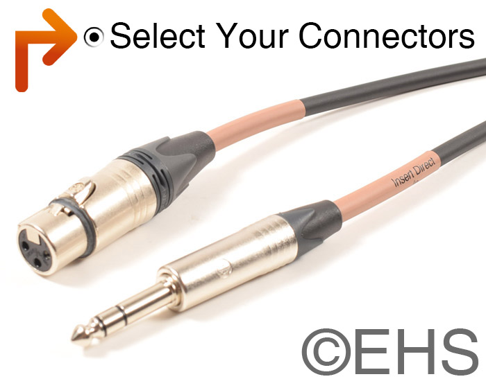 . It has a TRS (stereo or balanced) 1/4" connector on one end that plugs into a mixer's insert connection and is designed to pass signal directly into the signal return (the ring contact). This allows you to use external mic pre or other gear and feed the signal straight into the channel bypassing the consoles mic preamp (on many mixers the line input also goes through the mic pre). The TRS (insert) end is labeled with "Insert Direct In" (printed black on white shrink unless the color label is selected). You can select the connector you need for the other end.