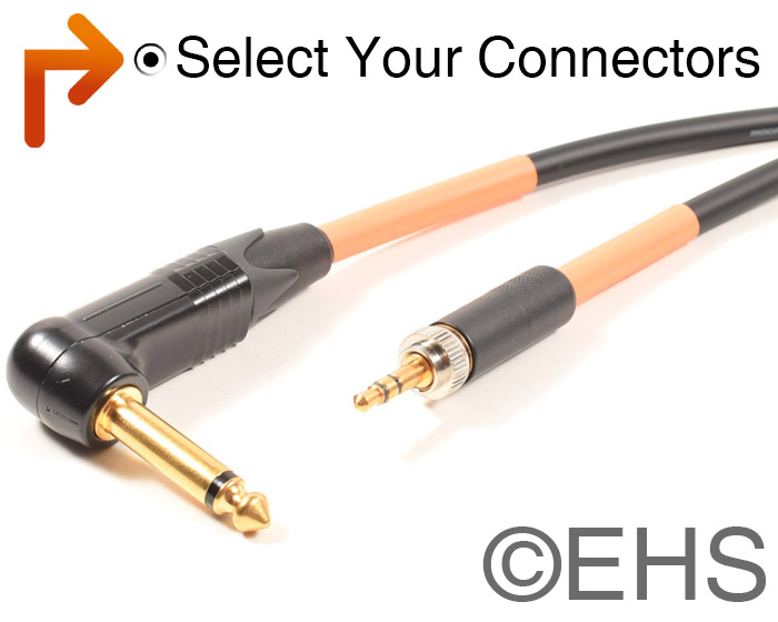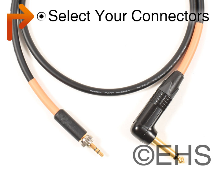 This is our custom-built Mogami 2319 with 1/8"-3.5mm locking to TS 1/4" for Sennheiser wireless systems with an instrument. This is a custom cable similar to Sennheiser's CI1-N or CI1-R that connects an instrument like a guitar or bass to a wireless bodypack. Construction is Neutrik and Switchcraft connectors with Mogami 2319 cable. Neutrik and Switchcraft connectors are some of the best connectors around. Mogami 2319 cable is very flexible, durable, light-weight cable.
