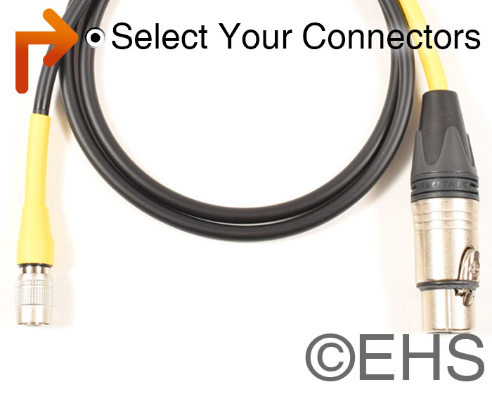 Photo 1 shows a 3ft cable with nickel XLR and HR10 and yellow shrink label. Photo 2 shows one option for the cable with nickel XLR and HR10 and yellow shrink label. Photo 3 shows the wire thickness. |