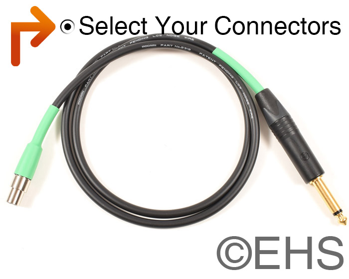 This is our custom-built Mogami 2319 TA3F Mini 3pin XLR to TS 1/4" for Samson wireless systems with an instrument. This is a custom cable similar to Samson's SWAGC32 that connects an instrument like a guitar or bass to a wireless bodypack. Construction is Neutrik and Switchcraft connectors with Mogami 2319 cable. Neutrik and Switchcraft connectors are some of the best connectors around. Mogami 2319 cable is very flexible, durable, light-weight cable.