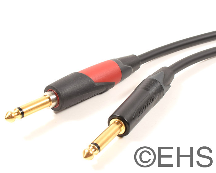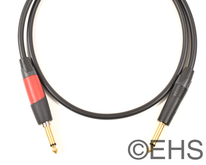 This is our custom-built Gold "Silent" TS to Gold TS Mogami 2524 Unbalanced Line Cable or Guitar and Instrument cable (TS is 1/4" mono or unbalanced connector). The Gold TS Silent is a special version of a TS plug with integrated switch which automatically mutes (shorts) a guitar cable to avoid annoying pops and squeals when hot swapping guitars. Construction is Neutrik gold TS connectors with Mogami 2524 cable. Neutrik connectors are some of the best connectors around. Mogami 2524 cable is very flexible, durable, heavy-weight cable. If you are on more of a budget, you might consider the 2319 cables.