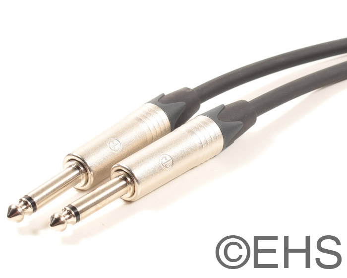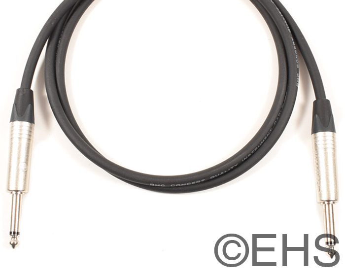 This is our custom-built TS to TS Unbalanced line cable or Guitar and Instrument cable (TS is 1/4" mono or unbalanced connector). Construction is Neutrik TS connectors with RapcoHorizon Concert1 cable. Neutrik connectors are some of the best connectors around. RapcoHorizon Concert1 cable is very flexible, durable, heavy-weight cable. If you are on more of a budget, you might consider the INST1 cables.