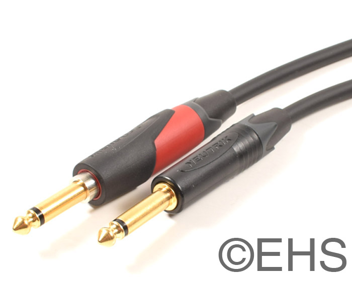 This is our custom-built Gold "Silent" TS to Gold TS INST1 Unbalanced Line Cable or Guitar and Instrument cable (TS is 1/4" mono or unbalanced connector). The Gold TS Silent is a special version of a TS plug with integrated switch which automatically mutes (shorts) a guitar cable to avoid annoying pops and squeals when hot swapping guitars. Construction is Neutrik gold TS connectors with RapcoHorizon INST1 cable. Neutrik connectors are some of the best connectors around. RapcoHorizon INST1 cable is very flexible, durable, light-weight cable. If you are looking for something a bit heavier, you might consider the Concert1 cables.